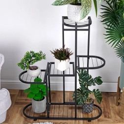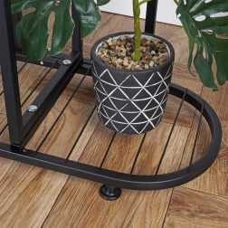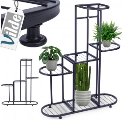 Stílusos, öt szintes fém virágtartó állvány, amely praktikus és dekoratív megoldást kínál növényeihez és kiegészítőihez. A 69,5 × 23,5 × 84,5 cm-es méreteknek és a stabil szerkezetnek köszönhetően minden polc akár 3 kg-ot elbír. A matt fekete szín és az indusztriális loft dizájn karakteres elemmé teszik bármely belső térben. Ideális lakásba, irodába vagy fedett erkélyre is.