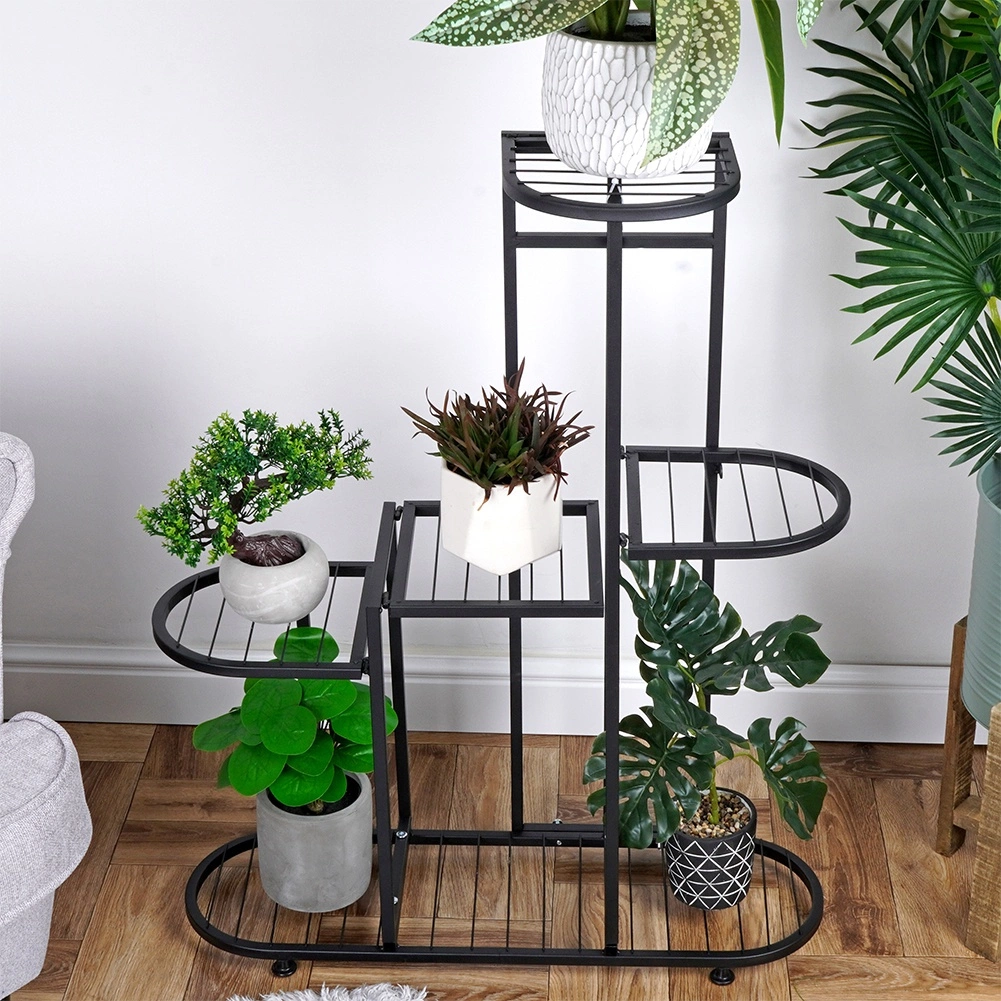 Fedezze fel az elegáns megoldást növényeihez és dekorációihoz. Ez az 5 szintes fém virágtartó állvány matt fekete színben remekül mutat a modern enteriőrökben, és egyedi karaktert kölcsönöz nekik. Alkalmas szobanövényekhez, pozsgásokhoz, futónövényekhez, valamint stílusos kiegészítőkhöz, mint például képkeretek, szuvenírek vagy vázák vágott virágokkal.