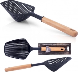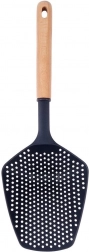 Ez a minőségi szűrőkanál ideális a mindennapi főzéshez. A nejlon fejnek köszönhetően biztonságos teflon-, gránit- és kerámiafelületeken, és az üveg edényeket sem karcolja. Az ergonomikusan formázott fa nyél kényelmes és biztos fogást nyújt, míg a végén lévő nyíl praktikus felakasztást tesz lehetővé a konyhai sínre.