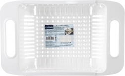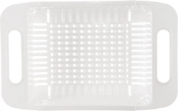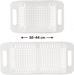 Praktikus és strapabíró mosogató szűrő, amelyet az állítható oldalsó fogantyúk segítségével könnyedén a mosogatód szélességéhez igazíthatsz. Ideális a mindennapi használathoz – a gyümölcs és zöldség öblítésétől a tészta vagy galuska gyors leszűréséig. A robusztus kialakítás és a sima élek kényelmes kezelést biztosítanak.