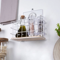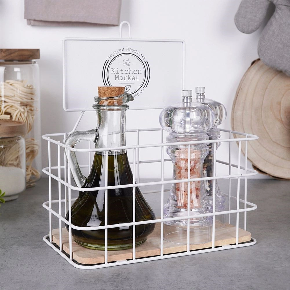 A nyitott, dróthálós kosár a fűszereket és apróságokat mindig szem előtt és kézközelben tartja, miközben nem foglal feleslegesen sok helyet a konyhapulton.