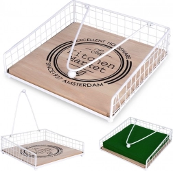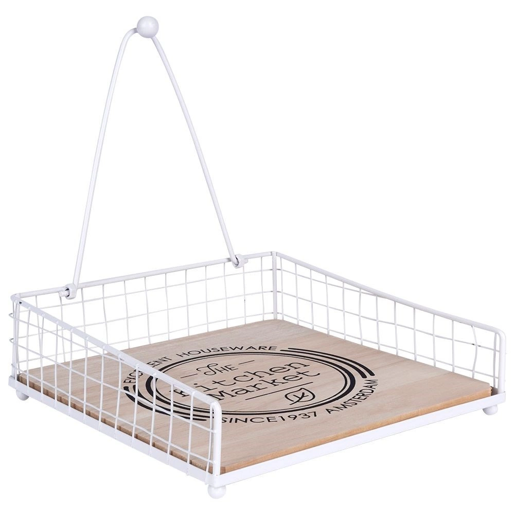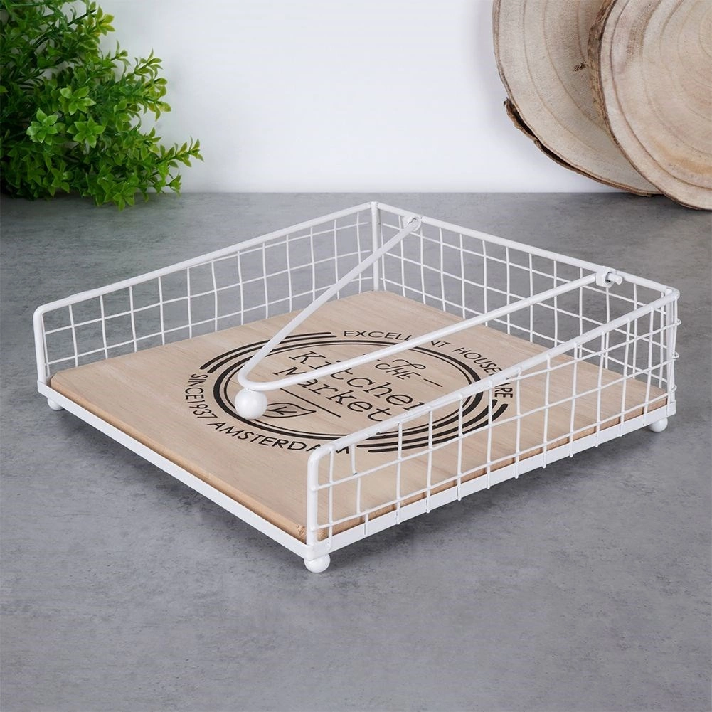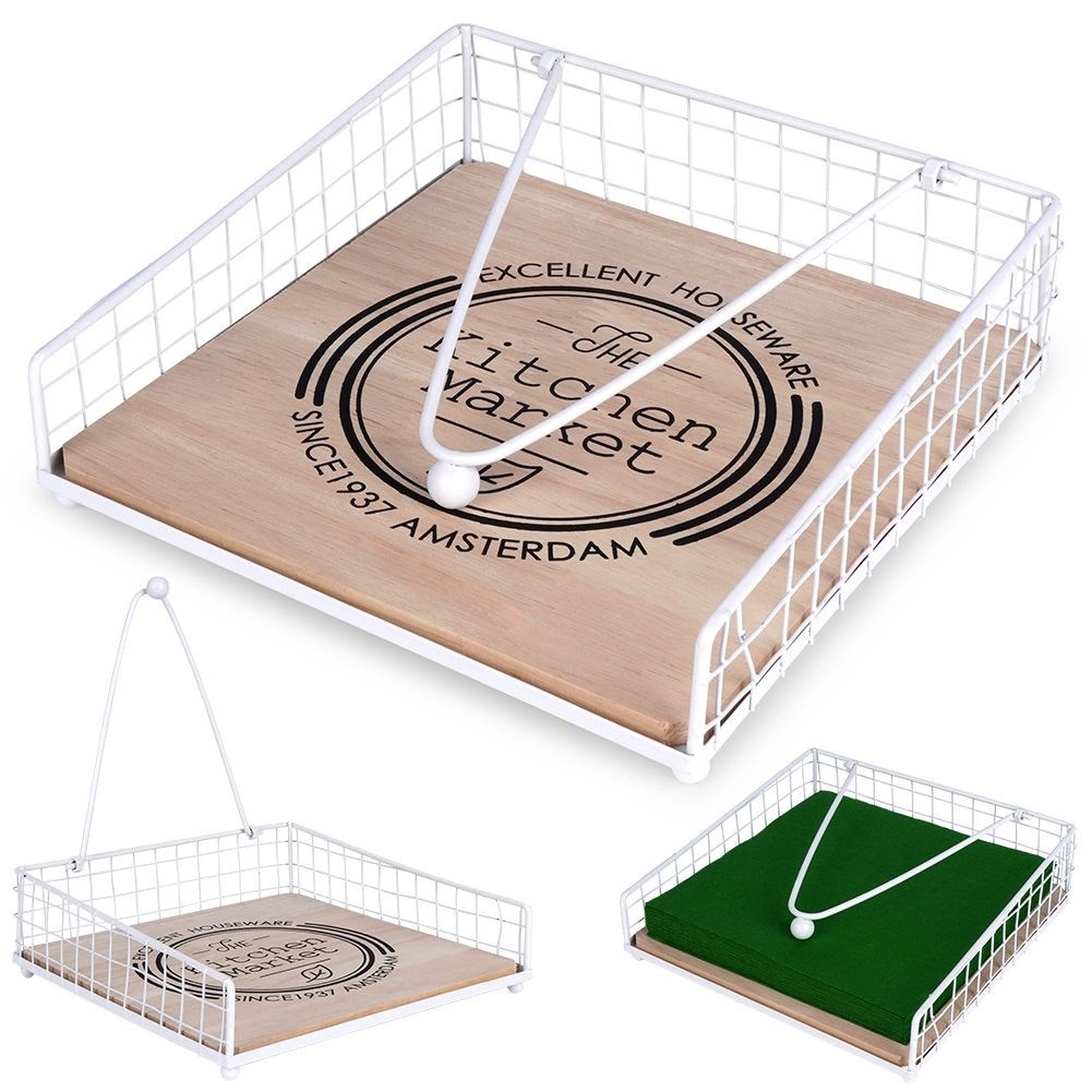 Elegáns és praktikus szalvétatartó leszorító karral, amely otthon és a szabadban is biztonságosan a helyén tartja a szalvétákat. A fehér fém és a tölgyfa kombinációja a „The Kitchen Market” felirattal stílust kölcsönöz konyhájának. Stabil leszorító, tartós anyagok és sokoldalú felhasználás asztalra, kertbe vagy teraszra.