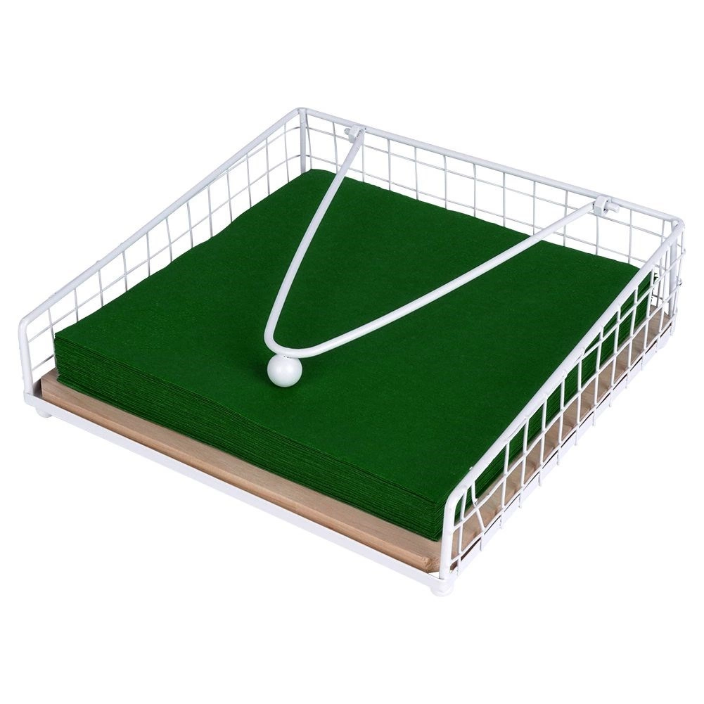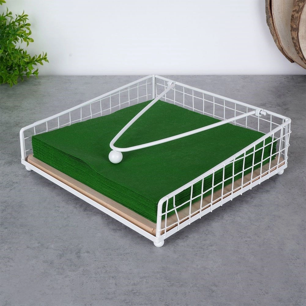 Ez a fehér fém szalvétatartó fa részlettel kényelmes szalvétaadagolást és tökéletes rögzítést biztosít a leszorító karnak köszönhetően. Illik a konyhába, étkezőbe, valamint kültéri étkezéshez – a kertbe, teraszra vagy erkélyre.