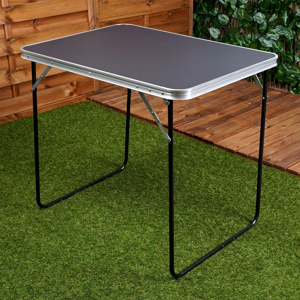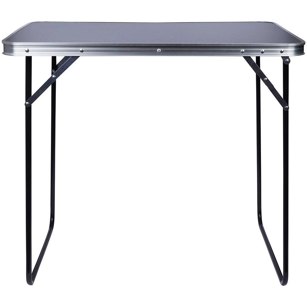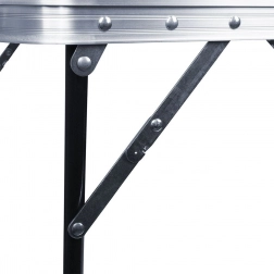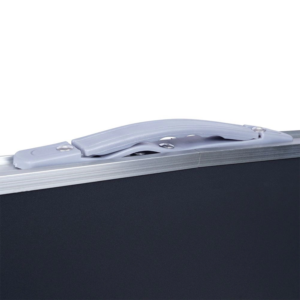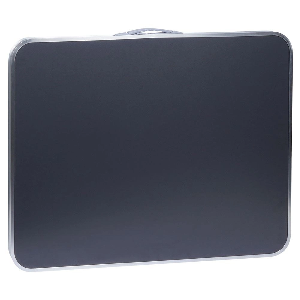 Az MDF lapot strapabíró felületkezelés védi, amely jobban ellenáll a nedvességnek és a mindennapos igénybevételnek. A stabil fém váz és a alumínium éllezárás formában tartja és szilárdságot ad az asztalnak. Összecsukva kompakt mérete 80 × 61,5 × 6 cm, a lap alatt hely van a lábak elhelyezésére, és a beépített fülnek köszönhetően könnyen hordozható.