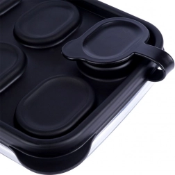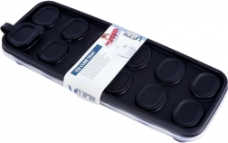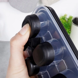 Ez a 25 × 10 × 3,5 cm-es, zárható jégkockaforma remek segítőtárs minden háztartásban. A praktikus kiöntőnyílással ellátott fedél kényelmes töltést és a víz egyenletes elosztását biztosítja minden rekeszben, míg a tömítő kialakítás minimalizálja a kifolyást és a fagyasztóból átvett szagokat.