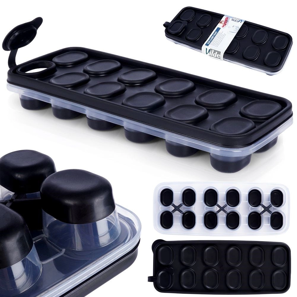 Praktikus jégkockaforma fedéllel és kiöntőnyílással az egyszerű, csöpögésmentes feltöltéshez. Akár 12 jégkockát készít, élelmiszerbiztonságos anyagokból készült, és a könnyű kinyomás érdekében szilikon alappal rendelkezik. Ideális vízhez, üdítőkhöz és koktélokhoz, valamint gyümölcslevek és sorbetek fagyasztásához is.