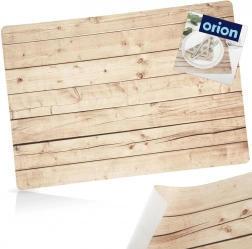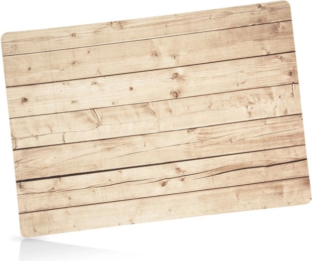 Stílusos, 43 × 30 cm méretű téglalap alakú asztali alátét, amely megvédi az asztallapot a szennyeződésektől és a karcolásoktól. A fa deszkákat imitáló dekor természetes és elegáns hatást kelt. Tartós, könnyen tisztítható, és remekül kiegészít bármilyen terítéket. Mindennapi használatra alkalmas a konyhában és az étkezőben.