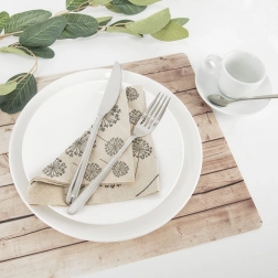 Praktikus és dekoratív asztali alátét, amely egységes és esztétikus terítéket hoz létre a tányérok és evőeszközök számára. A realisztikus fa dekor meghitt megjelenést kölcsönöz az asztalnak, miközben megbízható védelmet nyújt a felületnek a foltokkal, hővel és kisebb mechanikai sérülésekkel szemben.