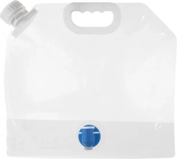 Praktikus, 4,8 literes összecsukható víztartály beépített csappal a pontos adagoláshoz. Rugalmas teste és a összecsukható kialakítás révén könnyen hordozható és helytakarékos. Széles, menetes nyakkal a kényelmes töltéshez, masszív fogantyúval a komfortos kezelhetőségért és strapabíró, átlátszó műanyagból – ideális kempinghez, utazáshoz és a kertbe.