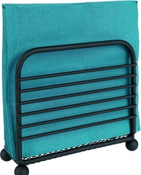 A nyitott oldalsó léceknek és a fém rácsnak köszönhetően a szalvétákkal való kezelés gyors és kényelmes. A csúszásgátló gömb lábak szélben is stabilitást biztosítanak, így a tartó beltérben és kültéren egyaránt használható – teraszon, erkélyen és a kertben. A minimalista megjelenés könnyen kombinálható bármilyen terítési stílussal.