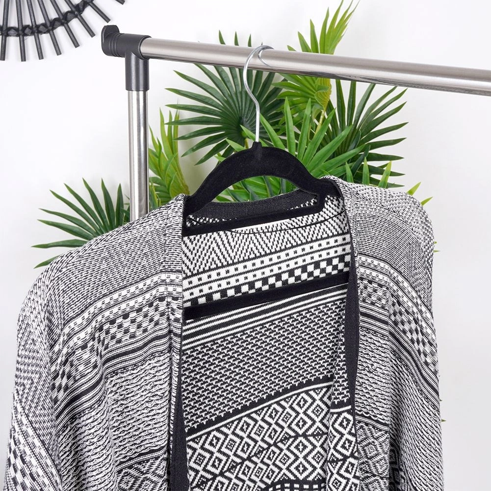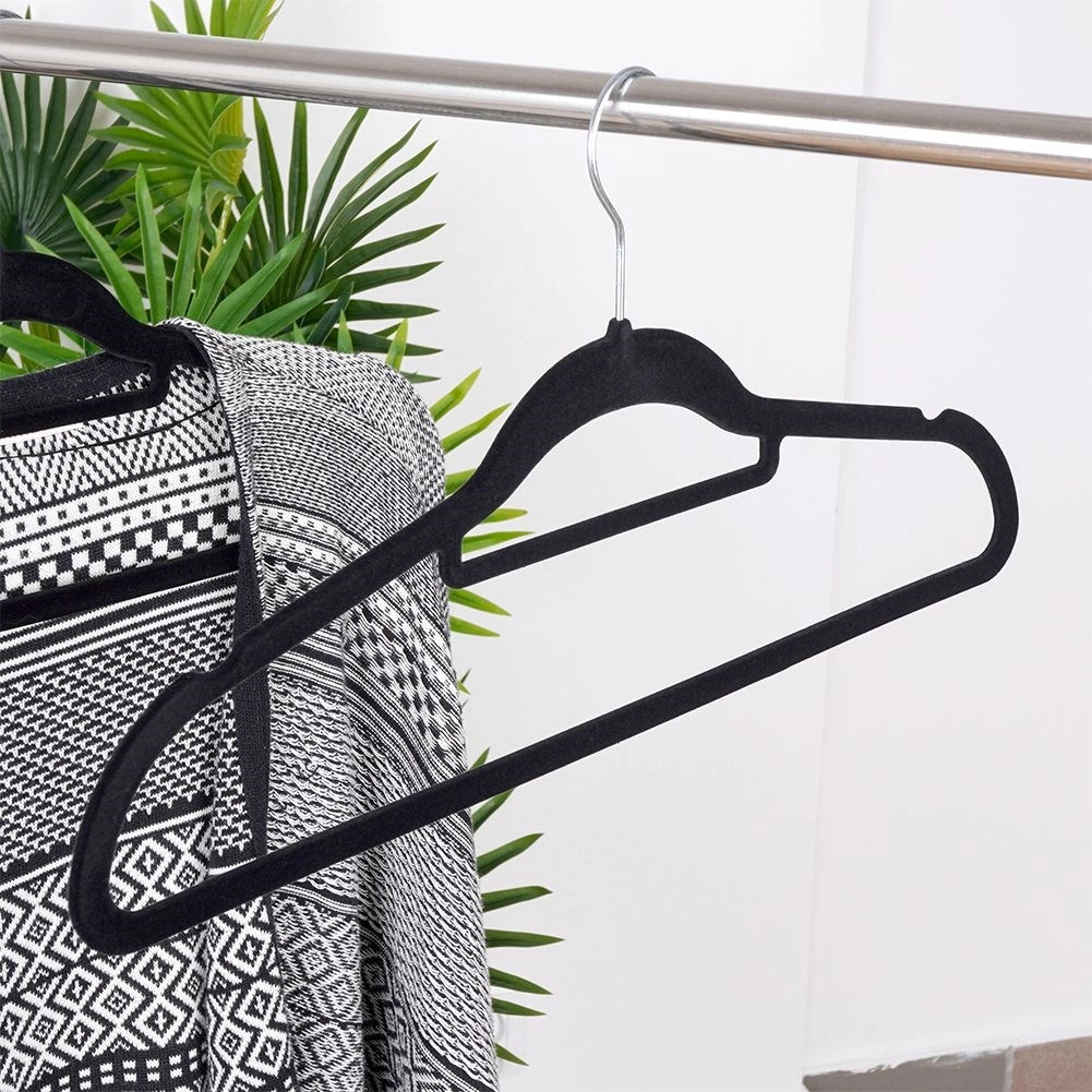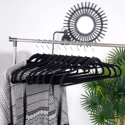 A fogasok vállrészen lévő bevágásokkal és alsó rúddal rendelkeznek, így gond nélkül felakaszthat pólókat, zakókat, spagettipántos ruhákat, szoknyákat, nadrágokat és sálakat. A bársony kíméletes a textíliákhoz, és segít megelőzni a lecsúszást, a gyűrődést és a benyomódásokat.