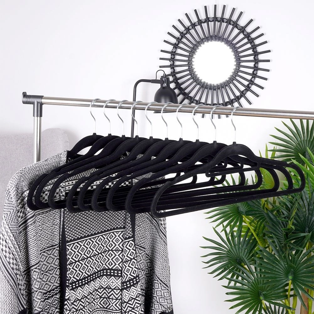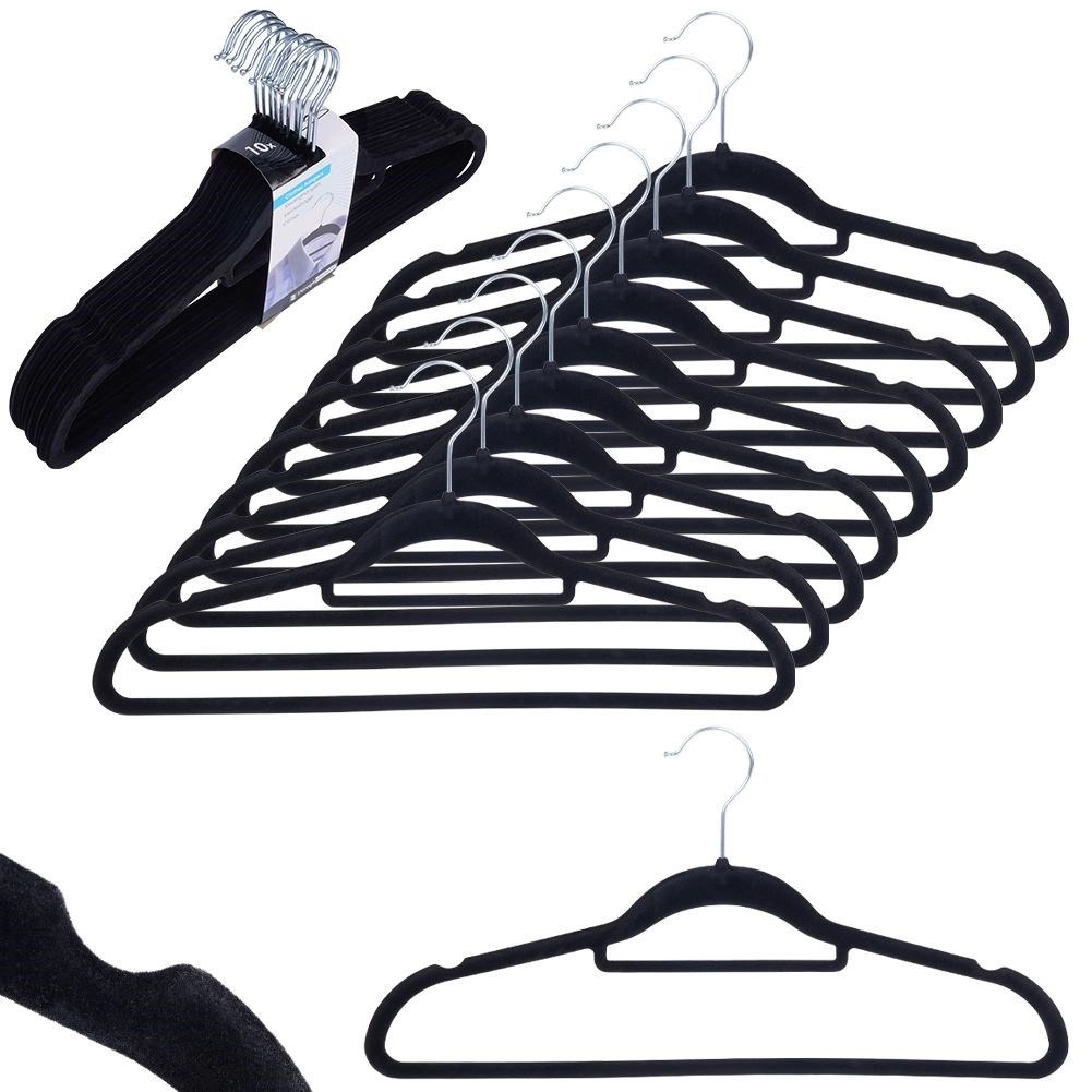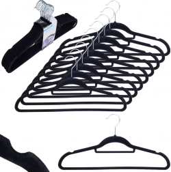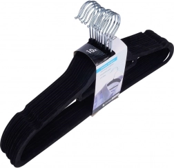 Praktikus, 10 darab vékony fogasból álló készlet finom bársonyos felülettel, amely segít rendben tartani a szekrényt és helyet takarít meg. A csúszásmentes bevonat biztonságban tartja a ruhákat, míg a forgatható fémkampó megkönnyíti a felakasztást bármilyen irányban.