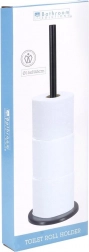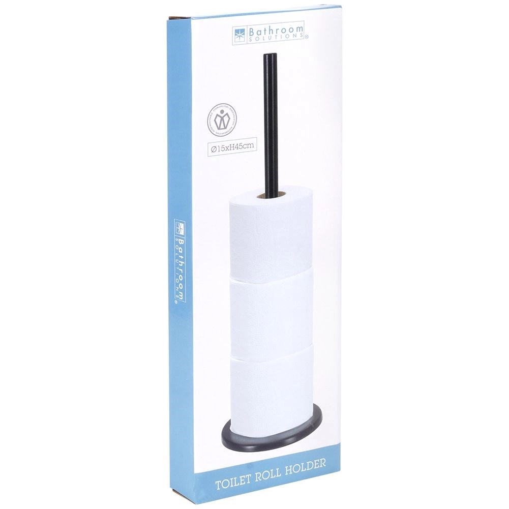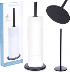 Elegáns, fekete rozsdamentes acél WC‑papírtartó állvány, amely akár 5 gurigát is befogad, és stabil, kerek talpának köszönhetően a kisebb fürdőszobákba is ideális. Tartós, helytakarékos, és nem igényel fúrást – remek választás modern és klasszikus enteriőrökhöz is.