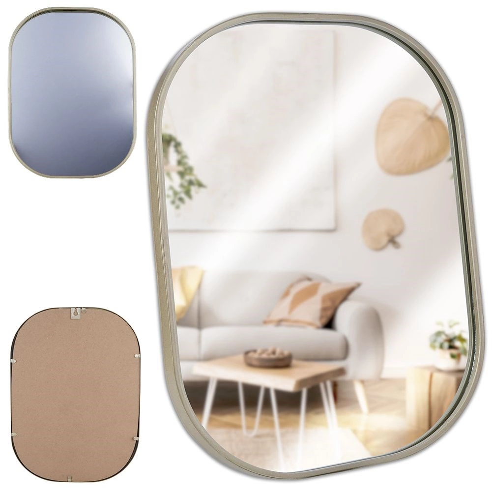 Elegáns, ovális alakú falitükör arany színű, fém keretlécből, amely stílust és fényességet ad a belső térnek. A 28 × 40 cm-es kompakt méretnek köszönhetően kiválóan illik az előszobába, a nappaliba és a hálószobába is. Gondos kivitelezése tiszta és éles tükröződést biztosít, és dekoratív elemmé válik modern és klasszikus enteriőrökben egyaránt.