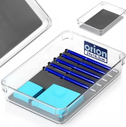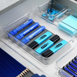 Használható a konyhában evőeszközökhöz és apró kellékekhez, az irodában írószerekhez, a fürdőben kozmetikumokhoz, valamint a műhelyben apróságokhoz. Több darab vásárlása esetén a rendezők praktikusan egymásra rakhatók, így hatékonyan kihasználható a hely. Az átlátszó kivitel gyors megtalálást tesz lehetővé.