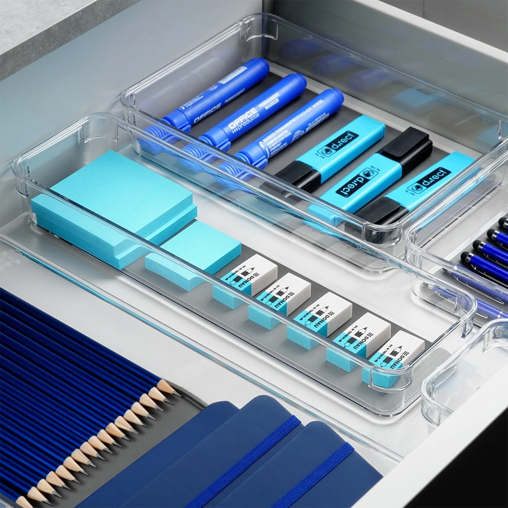 Az átlátszó oldalfalak és a keskeny, téglalap alakú forma elkülönítve és mindig kéznél tartja a ceruzákat, evőeszközöket vagy a kozmetikumokat.