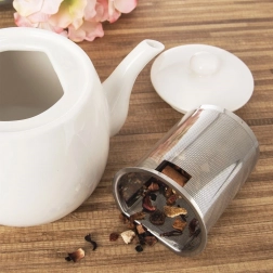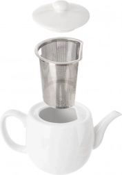 A kanna minőségi fehér porcelánból készült, amely szépen harmonizál bármely terítékkel, és könnyen tisztítható. Maga a kanna (szűrő nélkül) mosogatógépben mosható és mikrohullámú sütőben használható. Ideális ízléses ajándék teakedvelőknek.