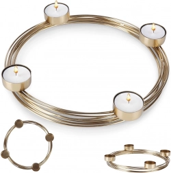 Ez a stílusos, minőségi fémből készült, luxus arany felületű gyertyatartó akár négy teamécsest is befogad, és kellemes, hangulatos fénnyel tölti meg otthonát. A letisztult, kör alakú forma több huzalgyűrűvel modern, minimalista megjelenést kölcsönöz, amely remekül illik modern és klasszikus enteriőrökhöz egyaránt.