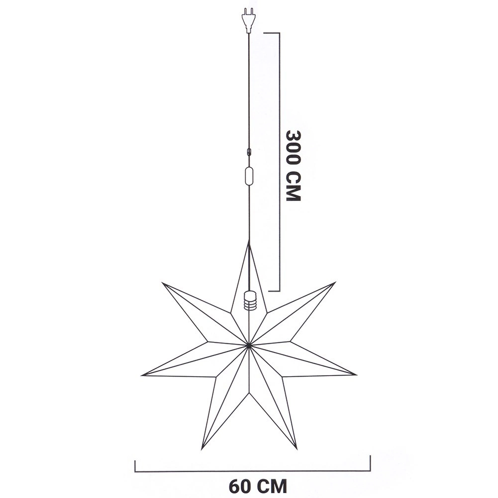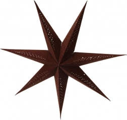Elegáns, 60 cm átmérőjű függesztett csillag masszív papírból, puha bársonyos felülettel barna színben, arany csillogó részletekkel. Felkapcsolva finom, hangulatos fényt ad, és ünnepi, valamint egész éves varázst kölcsönöz a belső térnek. Hálózatról működik, kapcsolóval, 3 m kábellel rendelkezik, és E14 foglalatú izzóval használható (max. 25 W, nem tartozék). Ideális ablakba, falra vagy bárhová, ahol szeretné kiemelni a otthonos atmoszférát.