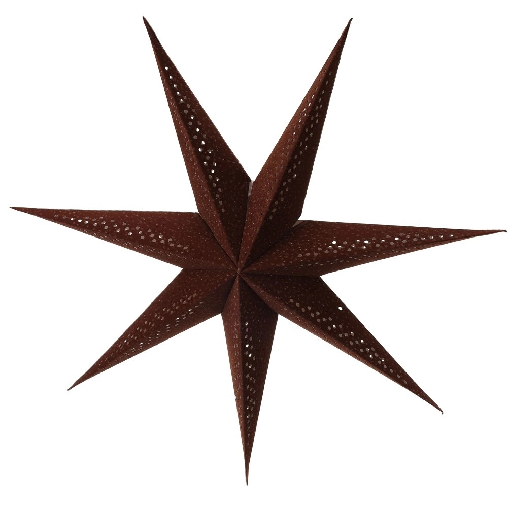 A barna bársonyos felület finom, csillogó részletekkel elegáns és ünnepi hatást kelt, így a csillag bármely enteriőrben remekül mutat.