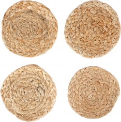 Az alátétek kézzel fonott, puha jutából készülnek természetes színben. Az anyag könnyű, tartós, és rusztikus, boho megjelenést kölcsönöz az asztalterítésnek.
