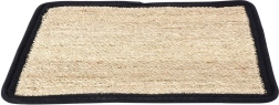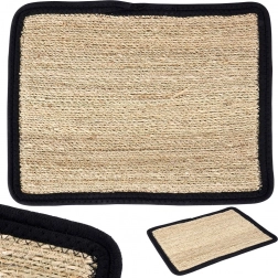 Stílusos tengeri fűből készült asztali alátét fekete pamut szegéllyel, 46 × 35 cm méretben, amely megóvja az asztallapot és természetes karaktert ad neki. Tartós, könnyen tisztítható nedves ruhával, és remekül illik bohó enteriőrökbe, konyhába és étkezőbe egyaránt. Használható tányérok, csészék és vázák alá, miközben dekoratív és csúszásmentes felületet biztosít.