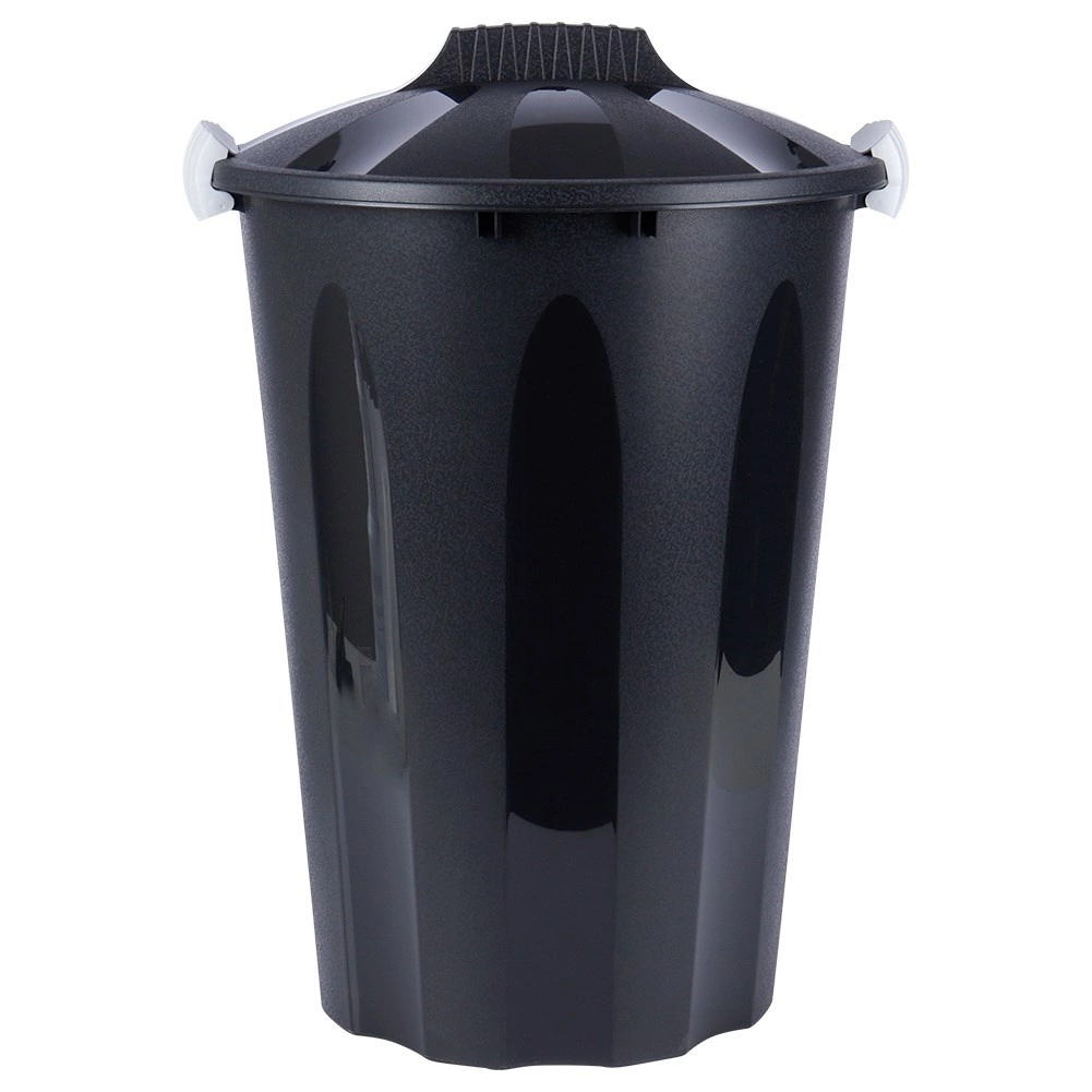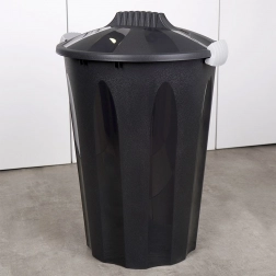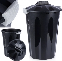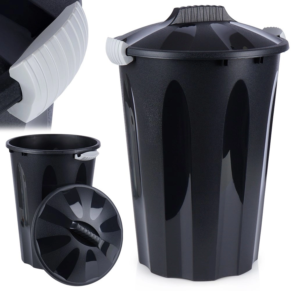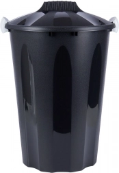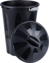 Praktikus, fekete, 50 l űrtartalmú szemetes biztonságosan záródó fedéllel és kényelmes fogantyúkkal, amely rendet és a szagokat is kordában tartja. Tartós műanyagból készül, 90% újrahasznosított anyag felhasználásával, könnyű, stabil és 100%-ban újrahasznosítható.