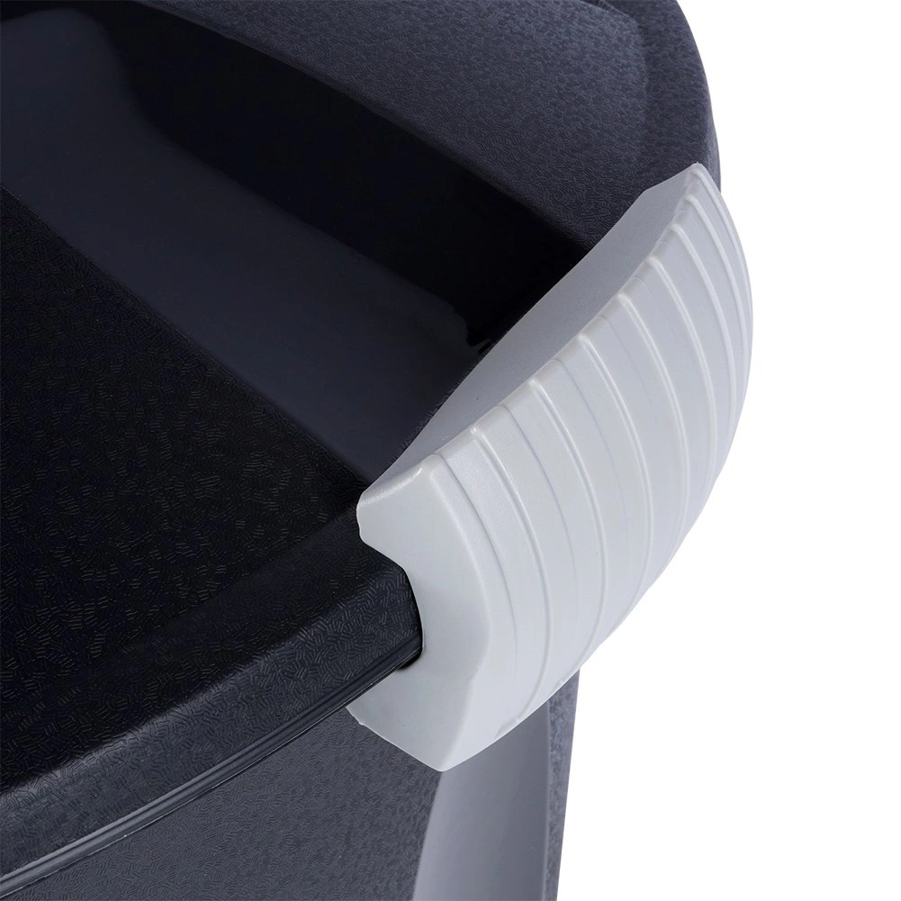 A szemetes fekete színű, minőségi műanyagból készült, szürke-fehér klipszekkel a biztos zárásért. Az anyag erős, könnyű és tartós a mindennapos használathoz. A gyártás során 90% újrahasznosított anyagot alkalmaznak, a termék pedig 100%-ban újrahasznosítható, így környezetbarát választás.