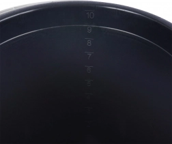 A belső mérőskála 1 literes beosztással lehetővé teszi a víz és más folyadékok pontos adagolását további mérőedény nélkül.