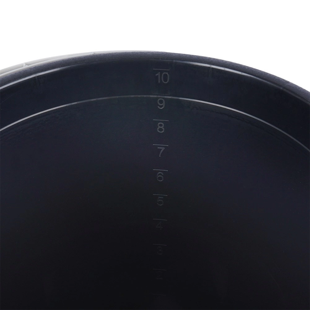 Sokoldalú fekete vödör ergonomikus, szürke füllel a mindennapi feladatokhoz otthon, a kertben és a garázsban. A széles perem megkönnyíti a feltöltést és az öntést, a belső 1 literes beosztás pedig pontos folyadékmérést biztosít. A strapabíró műanyag szerkezet egyben könnyű is a kényelmes hordozáshoz.