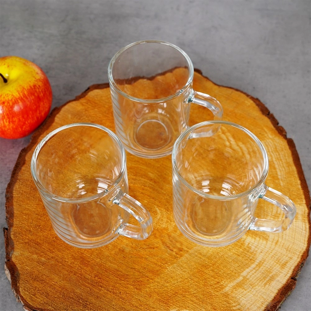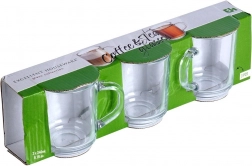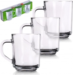 Praktikus, mindennapi használatra szánt, füllel ellátott háromdarabos üvegpohár-készlet. Minden pohár 230 ml űrtartalmú, minőségi, átlátszó üvegből készült, és alkalmas forró és hideg italokhoz. A strapabíró, vastag üvegnek köszönhetően mosogatógépben és mikrohullámú sütőben is használható, otthon és kávézóban vagy étteremben egyaránt remekül mutat.