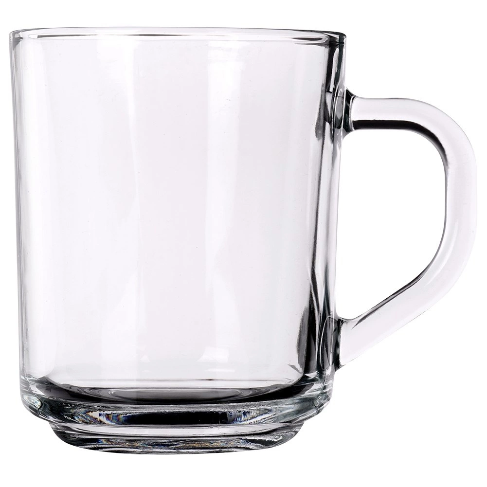 Elegáns, füllel ellátott üvegpoharak kávé, tea, víz, gyümölcslé és más italok tálalásához. Az átlátszó üveg kiemeli az ital színét, a klasszikus hengeres forma pedig kényelmes fogást és kellemes ivási élményt biztosít.