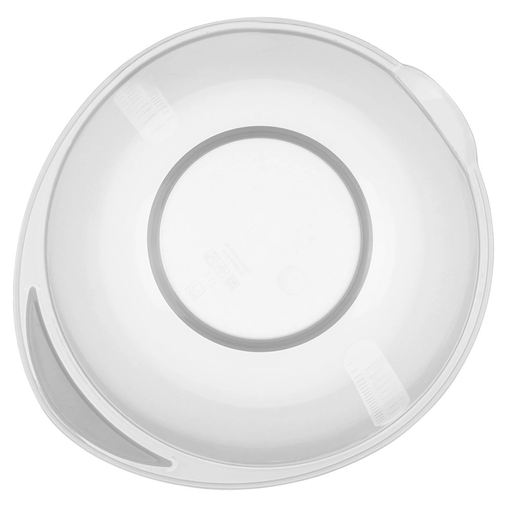 A csúszásmentes talp szilárdan a helyén tartja a tálat, az ergonomikus fogantyú pedig biztos fogást nyújt még intenzív keverésnél is.