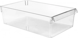 Rendezze a hűtőt és a kamrát ezzel az átlátszó tárolódobozzal, amely tökéletes áttekinthetőséget biztosít. Az átlátszó falaknak köszönhetően mindig első pillantásra látható a tartalom, a praktikus elülső fogantyúval pedig a doboz könnyen kihúzható. A 36 × 20,5 × 10 cm-es univerzális méret a legtöbb polchoz és fiókhoz illik.