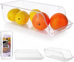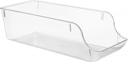 Praktikus, átlátszó hűtőszervező 35 × 14 × 10 cm méretben, amely segít élelmiszereit áttekinthetően rendszerezni. Az elülső kivágásnak köszönhetően a kivétel egyszerű és gyors, a bordázott alj növeli a stabilitást. Minőségi, egészségre ártalmatlan műanyagból készült, ideális gyümölcsökhöz, zöldségekhez és konzervekhez is. Helytakarékos, azonnali rálátás a tartalomra és könnyű karbantartás minden konyhába.