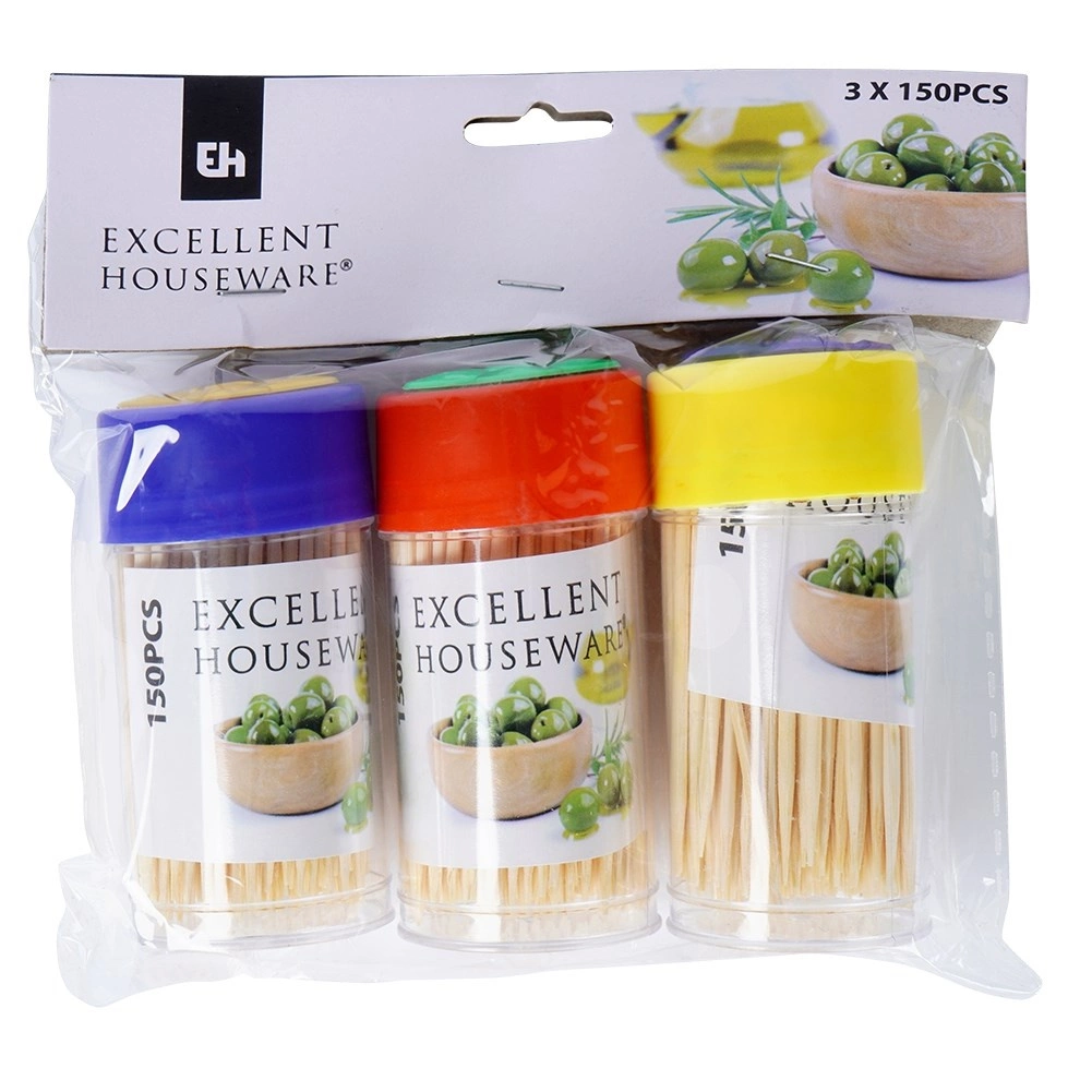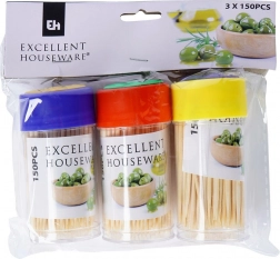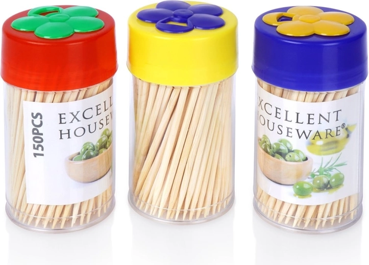 A készlet 3 átlátszó adagolót tartalmaz, mindegyikben 150 darab minőségi bambusz fogvájóval. A természetes anyag erős, sima és élelmiszerrel érintkezve biztonságos. Az adagoló fedélnek köszönhetően a használat gyors, tiszta és áttekinthető.