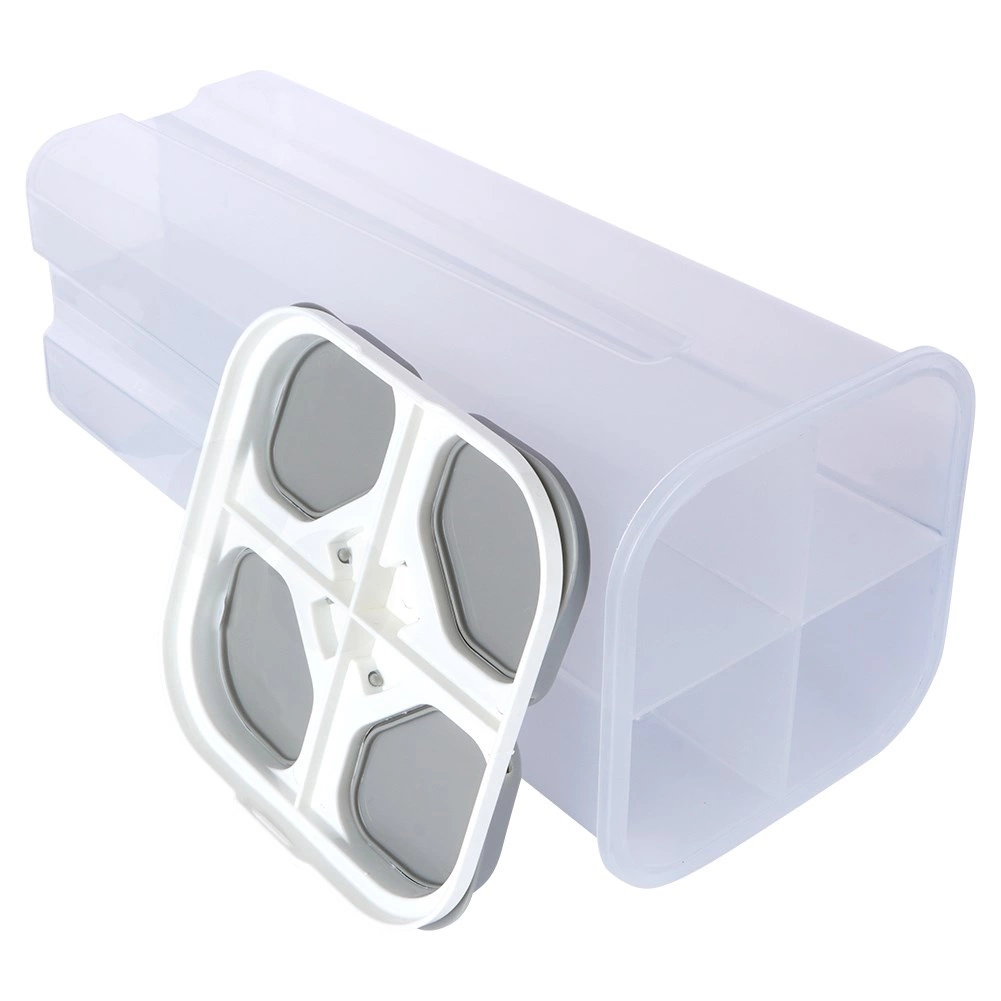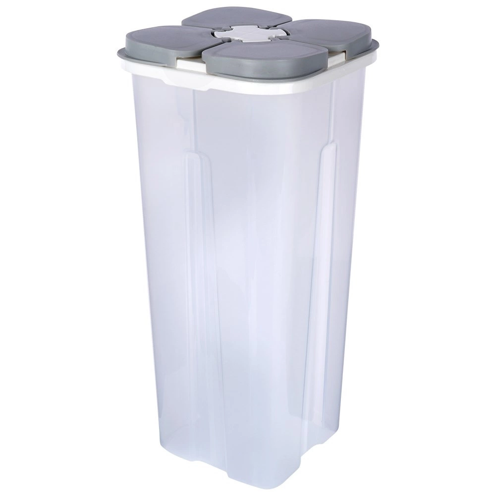 Tartson rendet a konyhában ezzel az intelligens tartállyal, amely egy kompakt testben akár négy különféle száraz élelmiszert is tárol. Minden rekesz saját adagolófedéllel rendelkezik a gyors és pontos kiöntéshez, anélkül hogy a teljes fedelet fel kellene nyitni. Az átlátszó falak azonnali készletellenőrzést tesznek lehetővé.