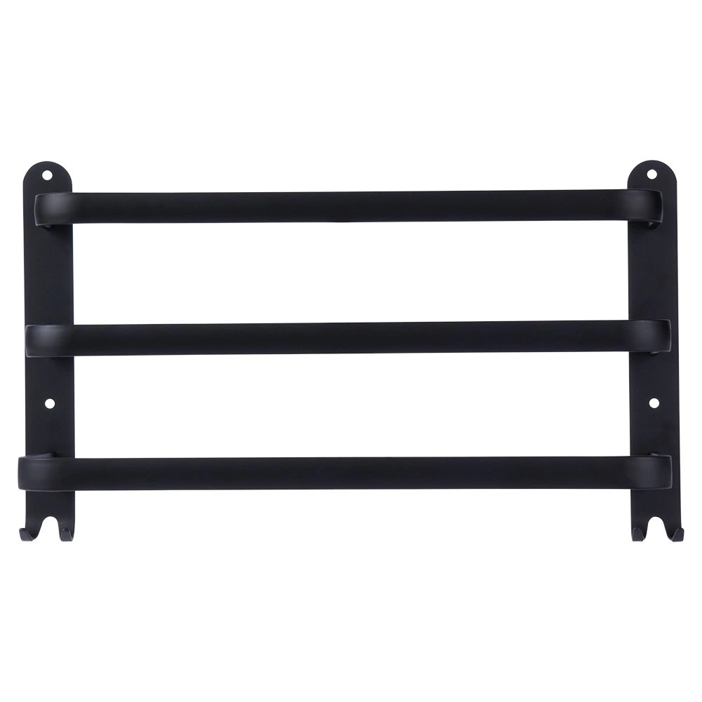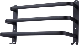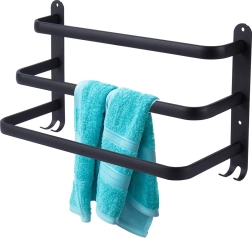 Stílusos és tartós törölközőtartó fürdőszobája rendszerezett kialakításához. A három vízszintes rúd hatékony szárítást és szellőzést biztosít, míg a négy alsó akasztó helyet ad a mosdókesztyűknek és kiegészítőknek. A minimalista, matt fekete design jól illik a skandináv, modern és loft stílusú enteriőrökhöz.
