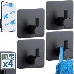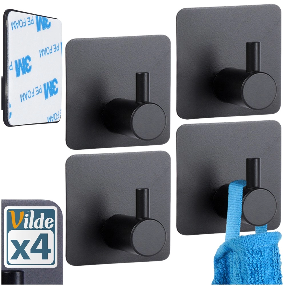 Praktikus, négy darabból álló, öntapadós, rozsdamentes acél akasztókészlet matt fekete színben konyhába, fürdőszobába és előszobába. A minőségi 3M ragasztószalagnak köszönhetően a szerelés fúrás nélkül, gyorsan és megbízhatóan elvégezhető. Az akasztók univerzális, négyzet alakú talppal, strapabíró kivitelben készülnek, és akár 1 kg terhelést is elbírnak törölközőkhöz, konyharuhákhoz vagy kisebb kiegészítőkhöz.