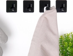 Elegáns és funkcionális tárolási megoldás minden otthonba. Az öntapadós akasztók rozsdamentes acélból, matt fekete kivitelben készülnek, így jól illenek modern és klasszikus enteriőrökbe egyaránt. A szerelés pillanatok alatt, szerszám nélkül elvégezhető – csak távolítsa el a védőfóliát, és erősen nyomja a felülethez.