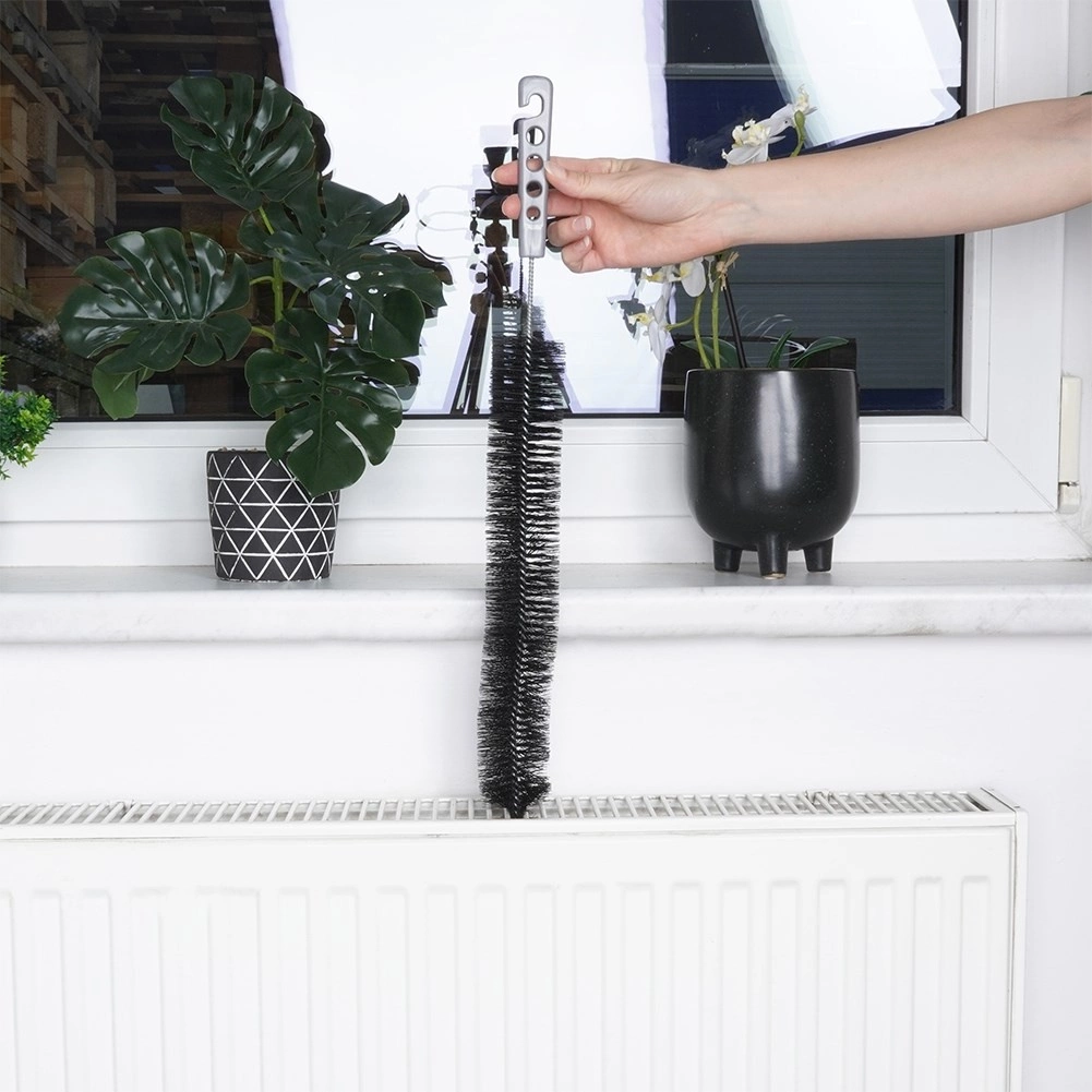 Tartsa pormentesen otthonát a hosszú, rugalmas radiátortisztító kefével, amely könnyen alkalmazkodik a formához, és a legszűkebb résekbe is behatol. A tartós fémmag és az erős műanyag nyél kiváló irányítást kínál takarítás közben.