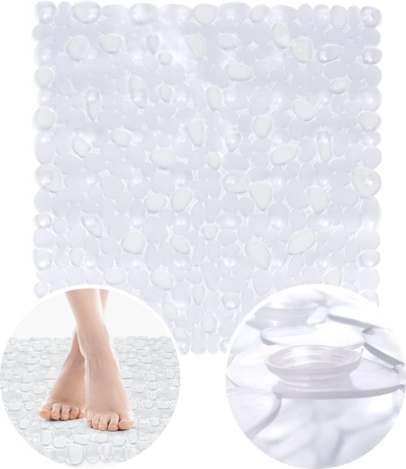 Biztonságosabb zuhanyzás minden nap: ez az átlátszó, 51 × 51 cm-es csúszásgátló szőnyeg erős tapadást biztosító tapadókorongokkal, megbízható csúszásvédelemmel és víz- és nedvességállósággal rendelkezik. Semleges kialakítása könnyen illeszkedik bármelyik fürdőszobába, és megóvja a talpat a hideg csempétől.