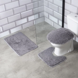 Emelje a fürdőszoba kényelmét és biztonságát. A háromrészes szett puha, meleg felületet ad a talpaknak, és védi a hideg padlótól. A semleges szürke árnyalat könnyen kombinálható bármilyen stílussal.