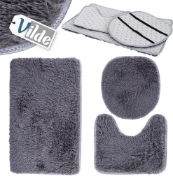 Téglalap szőnyeg a kádhoz vagy zuhanyhoz, U-alakú szőnyeg a WC-hez és ülőkehuzat gumipántokkal a stabil rögzítéshez.