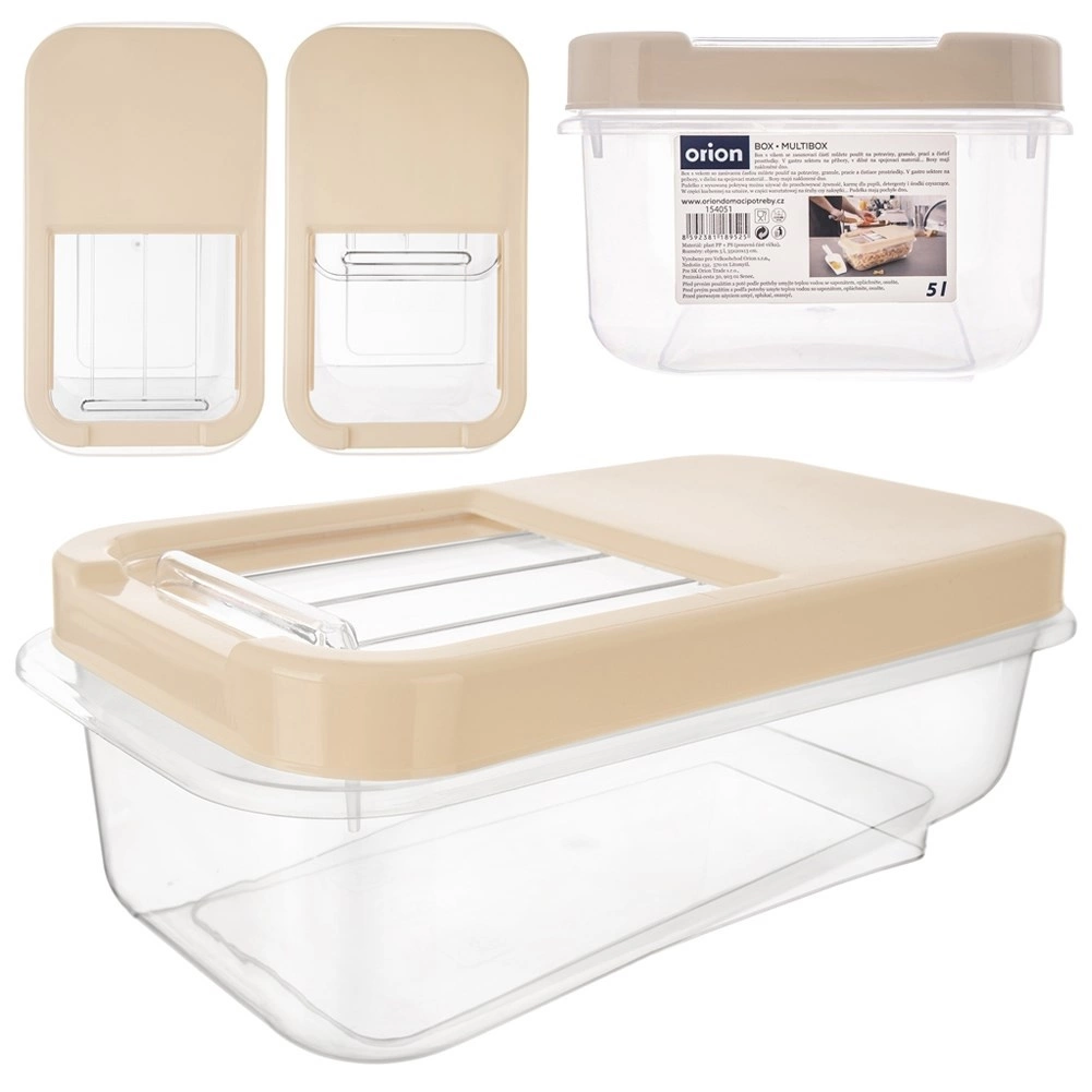 Tartson rendet a konyhában, a spájzban és a fürdőszobában a tágas, 5 l-es dobozzal. Az átlátszó test gyors készletellenőrzést tesz lehetővé, a csúsztatható fedél pedig kényelmes adagolást biztosít anélkül, hogy az egész dobozt ki kellene nyitni. A ferde alj megkönnyíti a kiszórást és a maradékhoz való hozzáférést.