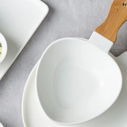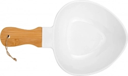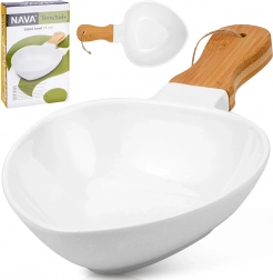 Fedezze fel az elegáns tálalást a NAVA TERRESTRIAL kollekció bambusz nyelű porcelán tányérjával. A kényelmes fülnek köszönhetően a hordozás és a tálalás biztonságos és kényelmes, miközben a fehér porcelán és a természetes bambusz kombinációja modern, időtálló megjelenést kölcsönöz az asztalnak.