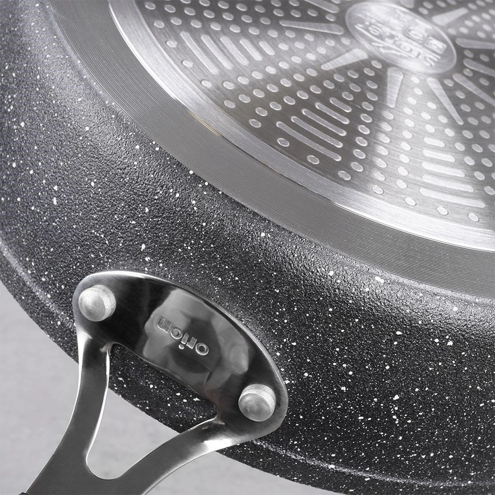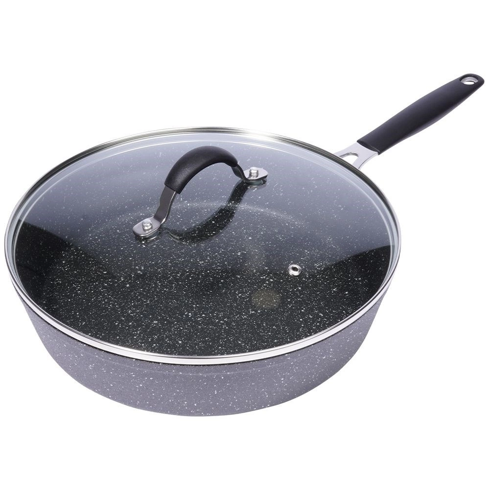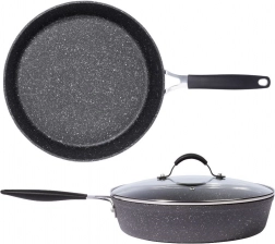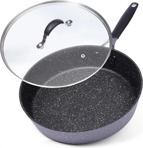 Ez a masszív gránit serpenyő ideális a mindennapi főzéshez – a sütéstől és pirítástól kezdve a pároláson át a mártások redukálásáig. A tapadásmentes kőbevonatnak köszönhetően egészséges, ízletes ételeket készíthet minimális zsiradékkal, odatapadás nélkül és szép barnulással.