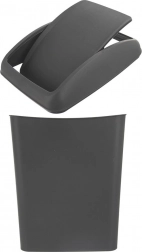Praktikus 40 l űrtartalmú műanyag szemetes matt, sötétszürke színben, billenő fedéllel. Könnyű és tartós, könnyen levehető fedéllel a kényelmes ürítéshez, és megbízhatóan visszatartja a szagokat. Konyhába, fürdőszobába, irodába és váróhelyiségbe egyaránt alkalmas, és remekül illik különböző enteriőr stílusokhoz.