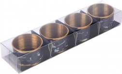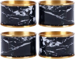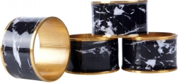 Adjon különleges bájt a terítékének. Ezek a fém szalvétagyűrűk fényes aranyszegéllyel és markáns fekete márványmotívummal tökéletesek ünnepi vacsorákhoz, családi összejövetelekhez és a mindennapi tálaláshoz is. Újra és újra használhatók, tartósak és igényesen kidolgozottak.