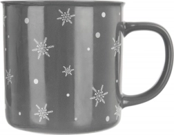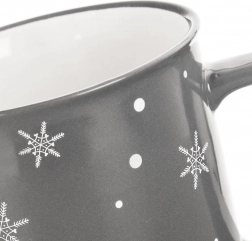 Élvezze kedvenc forró italát a téli dekorral díszített, nagy bögrében, amely otthonossá varázsol bármilyen asztalt. A klasszikus forma, a kényelmes fogás és az 500 ml-es űrtartalom remek társsá teszi hosszú reggelekhez és estékhez. A minőségi kerámia divatos szürke színben, fehér pelyhekkel könnyen kombinálható a konyha egyéb felszereléseivel.
